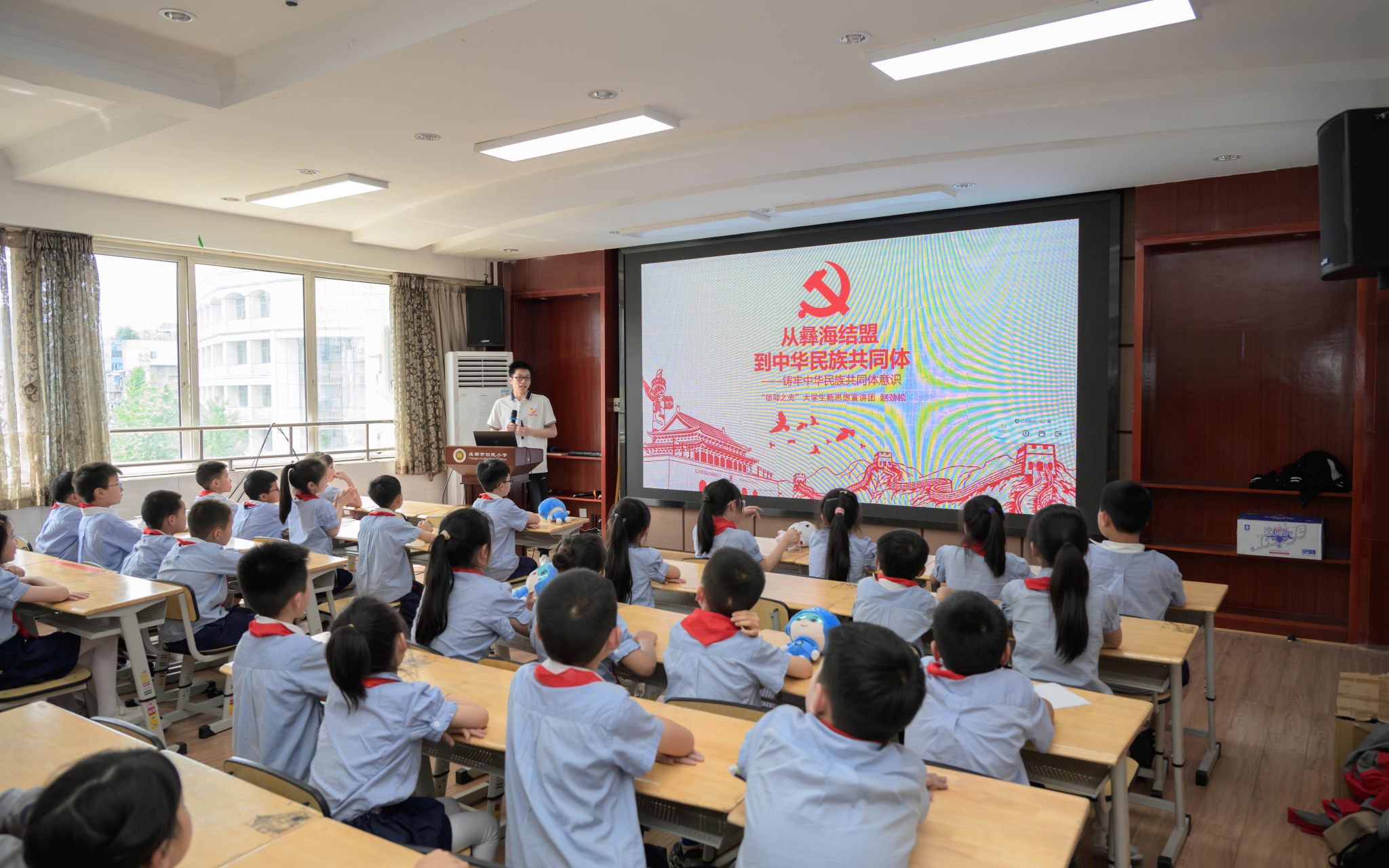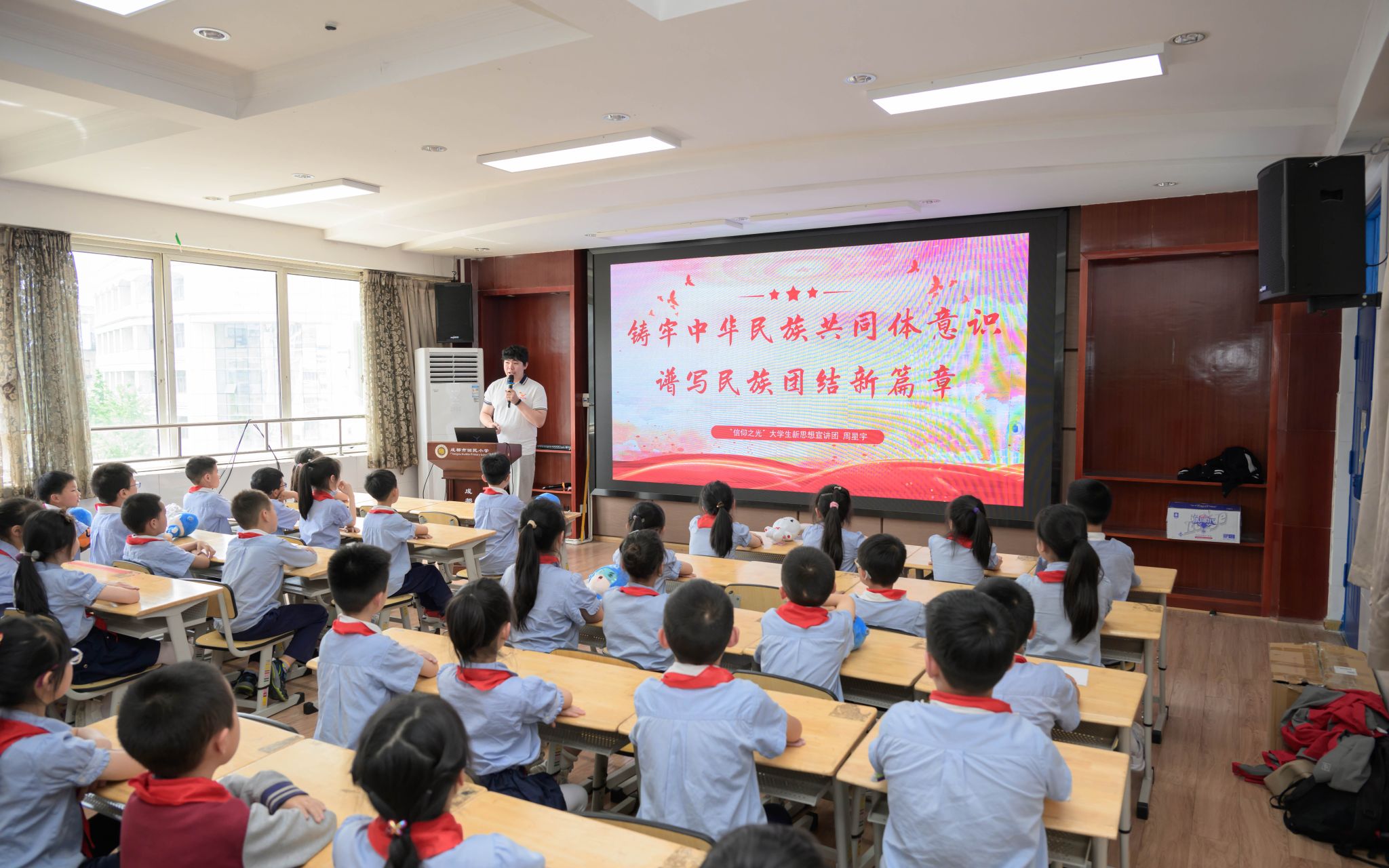 “信仰之光”宣讲团周星宇、赵劲松围绕“铸牢中华民族共同体意识”进行主题宣讲,通过讲述彝海结盟的故事,介绍其美多吉、孔繁森等民族团结典范的事迹和各民族传统文化引导在场小学生树立中华民族共同体意识,理解维护民族团结的重大意义。他们在宣讲中提出期望,希望新时代少先队员们能满怀身为中华民族一员的荣誉感和自豪感,以更加饱满的热情和坚定的信念,共同铸牢中华民族共同体意识,为实现中华民族伟大复兴的中国梦贡献力量。