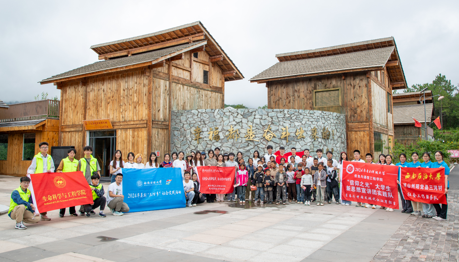 在活动期间,“信仰之光”宣讲团还遇到了来自西南石油大学、西南科技大学、湖南师范学院的大学生暑期实践队。据了解,3支队伍将分别开展儿童暑期夏令营、“番茄+草莓”联培种植技术推广、脱贫攻坚与乡村振兴有效衔接田野调查等活动,为三河村的低龄儿童陪伴教育、农业生产新技术推广、乡村建设科学规划贡献新时代大学生的青年力量。五所高校的暑期实践队在美丽的三河村相遇,大家互相勉励,纷纷表示将在社会实践中受教育、长才干、做贡献。