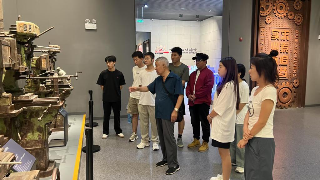 在天水岷山军工博物馆,一件件饱含历史沧桑的军工产品、一幅幅热火朝天的生产场景图片,将师生们带回“三线”建设那段激情燃烧的岁月。活动特别邀请天水岷山机械厂退休老职工,以亲历者的视角,讲述了工人们如何攻克技术难关,生产出保家卫国急需的精密装备。72岁的老工人看着陈列馆里的生产机器,眼中闪烁着自豪的光芒:“那时候,精度就是生命线,一丝一毫都不能差!为了一个合格件,师傅们能反复琢磨几天几夜。”这种对极致精准的执着追求,对产品质量近乎苛刻的要求,正是工匠精神在军工领域的最高体现,深深震撼了电子信息学院的学子们。