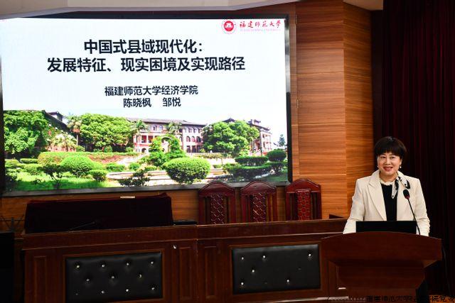 我院陈晓枫教授报告的题目是《中国式县域现代化:发展特征、现实困境及实现路径》。她指出,中国式县域现代化是以县域为突破口破除城乡二元结构,以县城为载体协同推进新型城镇化建设和乡村全面振兴,以衔接互补为原则促进县乡村一体发展。推进中国式县域现代化建设面临着生产环节要素配置不合理、交换环节商业体系不健全、分配环节收入分配不均衡、消费环节供需结构不匹配的社会再生产困境,劳动市场、土地市场、金融市场、现代要素市场、公共资源配置等二元性是中国式县域现代化的主要阻因。因此,率先在县域内破除城乡二元结构,使城乡关系从二元分割演进至融合发展,是中国式县域现代化的发展关键,这要求城乡要素间互动实现单向割裂向共生共存的转变,促进发展要素和各类服务更多下乡。