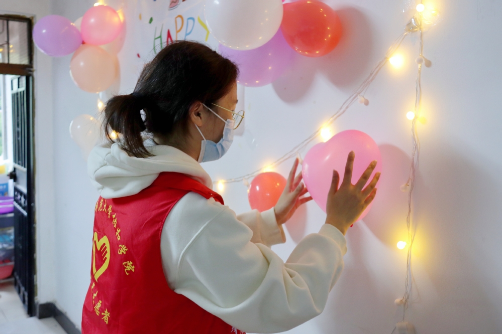 为确保现场活动的顺利开展,师生党员提前来到了福州元洪小区爱心小家,与爱心小家管理员们共同布置活动场地,天花板与墙壁上童趣十足的气球装饰、有序摆放的儿童座椅、整齐美观的水果拼盘、精心准备的玩偶与鲜花礼包处处体现着师生们的热情与温暖。