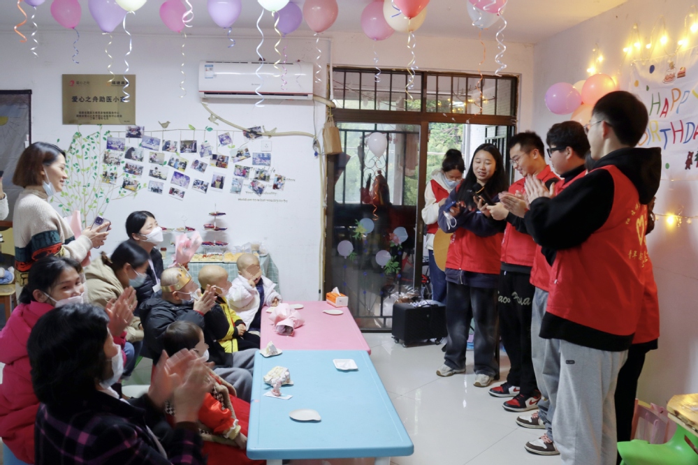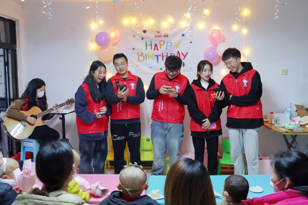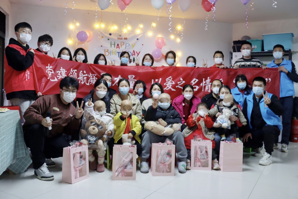 随后,师生党员们为孩子们举办了一场集体生日聚会,“祝你生日快乐!”在场的师生党员们为孩子们齐声唱起生日歌并送上真挚的生日祝福,同时引导孩子们为爸爸妈妈送上鲜花表示感激。师生们还为孩子们精心准备了歌唱节目,充满激情的高声歌唱让现场的活跃气氛逐渐热烈,孩子们积极加入演唱,悦耳的歌声与欢快的旋律在房间内久久回荡。