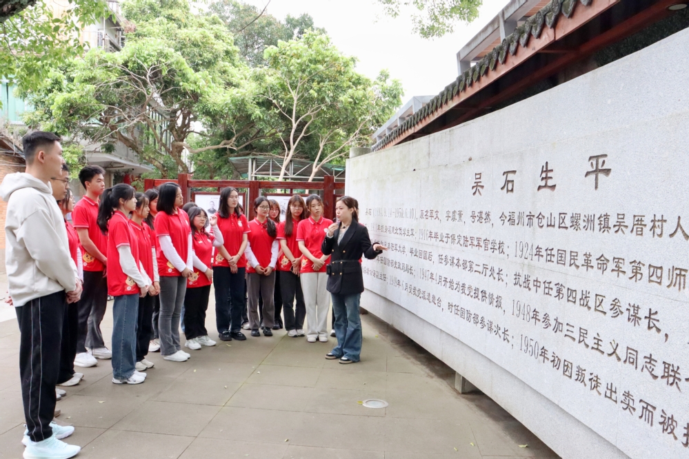 4月10日下午,我系团委书记王晓强及部分教师党员带领学生前往仓山区螺洲镇吴石将军故居开展国家安全教育实践活动,吴石将军是电视剧《潜伏》中余则成的原型。在庄重的吴石将军广场,师生们瞻仰了吴石将军雕像,通过讲解员的详细介绍,深入了解了吴石将军作为我党打入国民党内部最高级别情报官的英勇事迹。他多次舍生忘死投身情报事业,最终英勇就义,但始终不忘践行国家安全观。在毛泽东主席的题字“惊涛拍孤岛,碧波映天晓。虎穴藏忠魂,曙光迎来早。”前,师生们深刻感悟到吴石将军在隐蔽战线上的斗争精神和崇高的爱国主义精神。