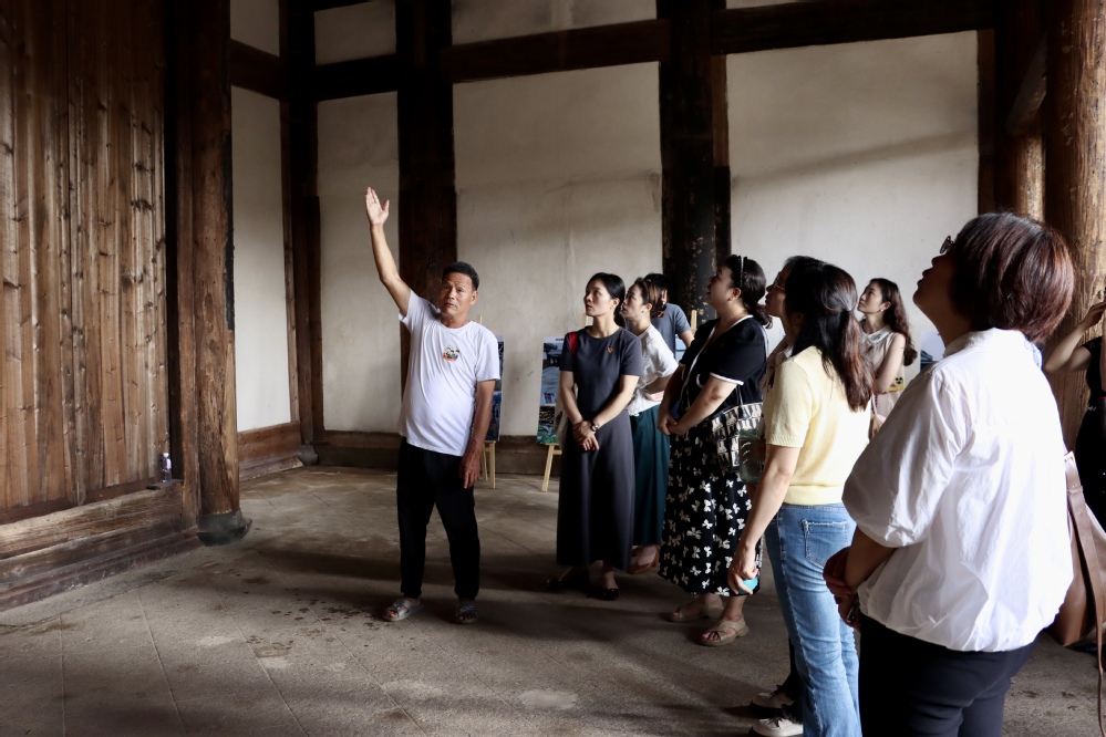 活动伊始,全体教工党员来到明朝进士林春泽故居,讲解员、林氏后代林用意详细介绍了水西林“忠孝传家,清正廉明”的家风家训,讲述了明清时期林氏家族“父子孙孙世进士”的科举佳话。在林春泽之子林应亮的故居,全体教工党员见识了水西林氏家族府邸的建筑理念,独具特色的牛头木雕样式引发党员们浓厚的兴趣,这一建筑细节生动诠释了水西林氏家族“刚正不阿、忠诚不渝、勤政为民”的为官之道及薪火相传的文化精神。随后,全体教工党员移步至福州高新区非遗展示馆,深入感受南屿地区自唐宋延续至今的闽都文化脉络。