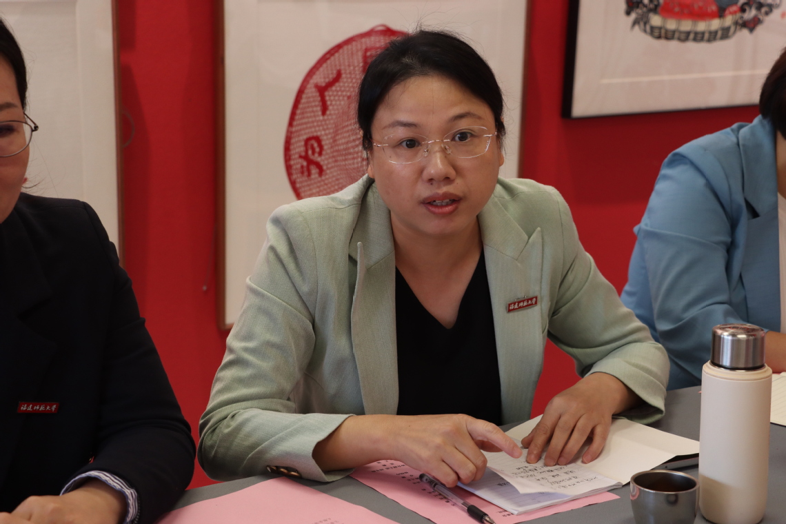 信息技术系章斓副教授从专业角度建议,运用数字媒体技术将剪纸技艺以动画、短视频等形式活化呈现。通过实拍与动画结合、线上教学等方式,让非遗实现更生动的数字化传播。我系党总支委员、副主任李莉教授提出,传统文化的传承与创新发展需要政府推动、市场驱动、社会联动,合力推进。在人才培养上,需创新培养方式,构建高校、政府、企业及行业组织协同联动的人才培养生态,以国家非物质文化遗产浦城剪纸为出发点,以“剪纸+数字运营”为切入点,培养自觉热爱传统文化、主动理解传统文化、积极创新传统文化、大力发扬传统文化的时代新青年。我系党总支委员、系主任雷金英教授强调,高校要通过微专业、产教融合等机制创新,让学生在校期间就能对接真实产业需求。学校将不断探索人才培养新模式,把数字化融入非遗教育,整合多方资源推动非遗传承。