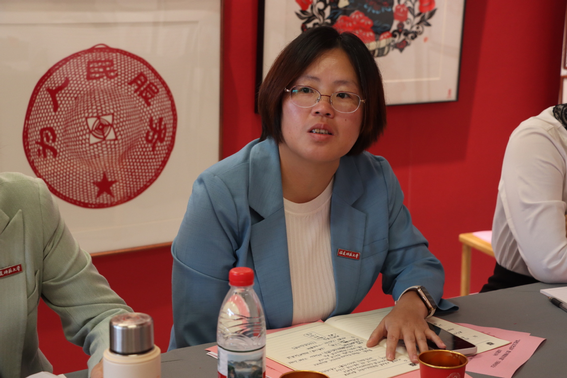 主题座谈会上,我系教工党支部组织委员、“文旅品牌营销与数字化运营”微专业负责人翁清清,展示了“非遗IP数字化运营”项目的实施与规划。与会嘉宾围绕非遗数字化保护、创新发展等关键议题进行了深入交流。浦城县文学艺术界联合会主席傅让兴指出,非遗传承需要情怀支撑,要通过数字赋能推动非遗产业化发展,充分发挥地方资源优势。浦城县巧剪文化传播有限公司首席文化官李增全表示:“实现从非遗的保护到文化产业的兴盛,关键在人才,既需培育传承技艺的‘守艺人’,也需培养懂市场、善创新的‘开拓者’”。国家级非遗传承人周冬梅提出,剪纸技艺在保留传统特色的基础上要不断创新,开发符合当代审美需求的文创产品,积极探索非遗技艺在新时代的传承路径。