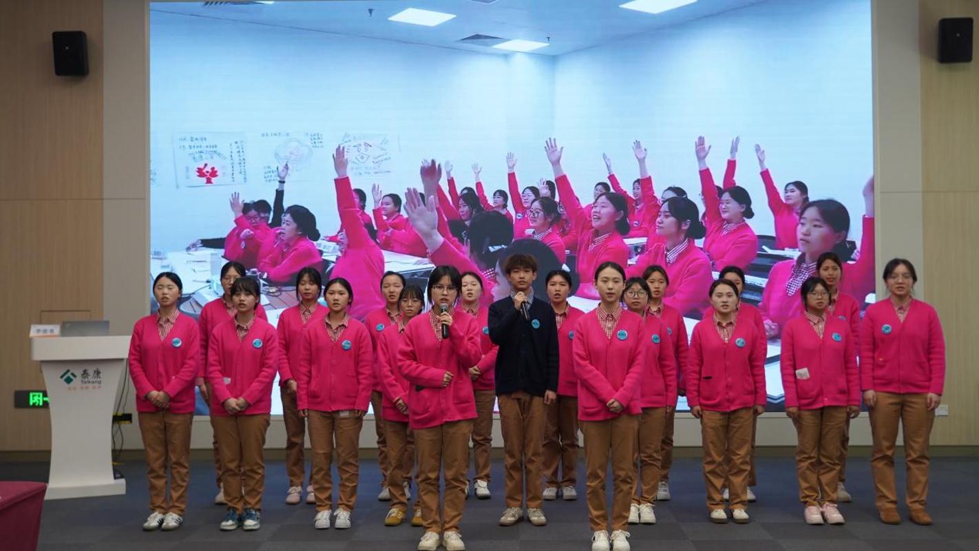 仪式上,同学们还深情朗诵了自编自导的《泰康见习行》,用青春的声音传递对康养事业的热爱与向往。最后,会议对前期新人集训中的优秀学员进行表彰,鼓励全体学生以先进为榜样,在未来的学习与实践中锐意进取、精益求精。