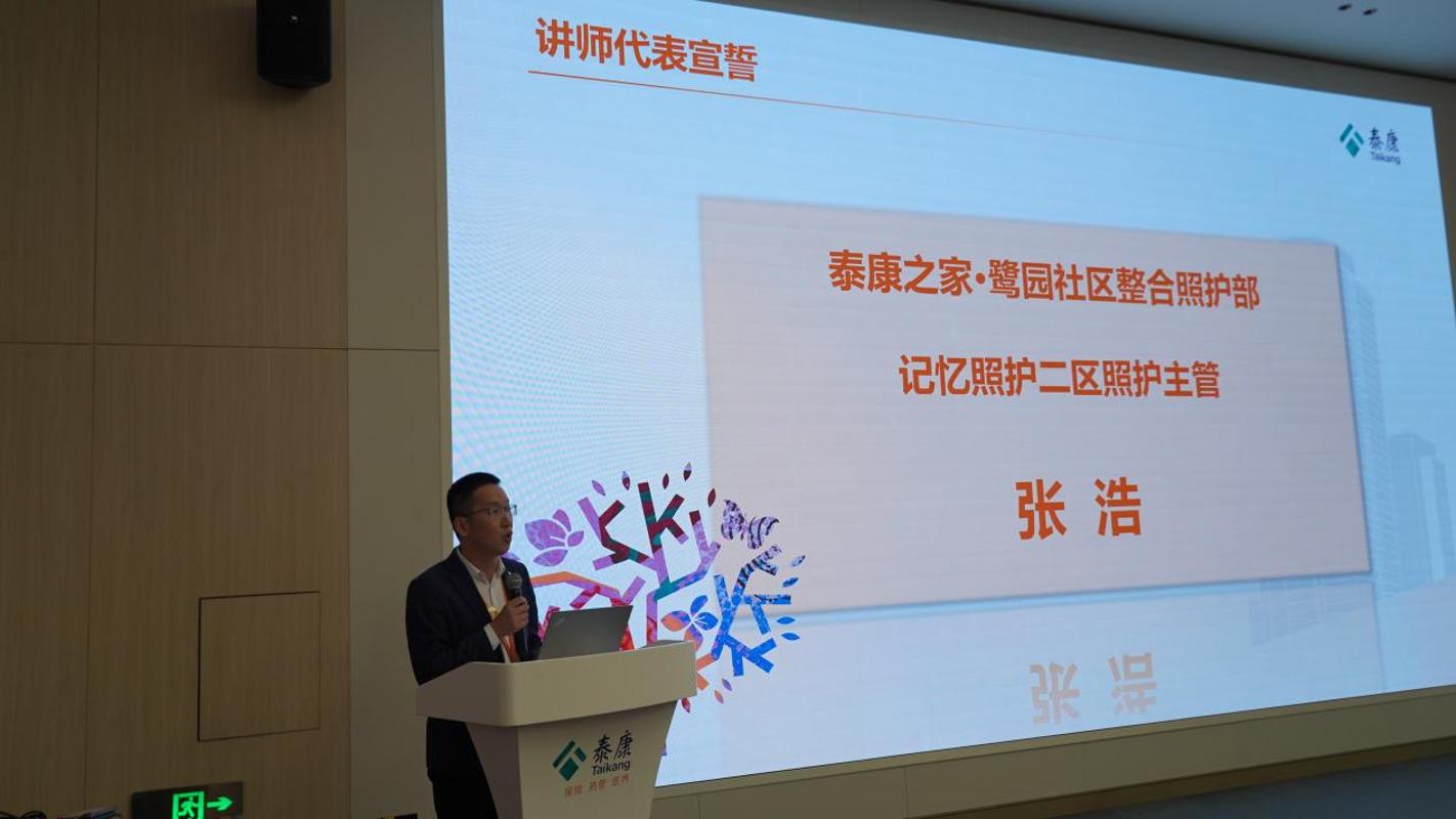 讲师代表张浩发言时表示,将立足教学本职,传授专业知识与实践技能,积极借鉴泰康之家・鹭园先进理念,优化教学内容。同时勉励同学们珍惜合作班学习机会,勤学苦练,成长为有温度、懂专业、能实干的康养人才,不负校企共同培养。
