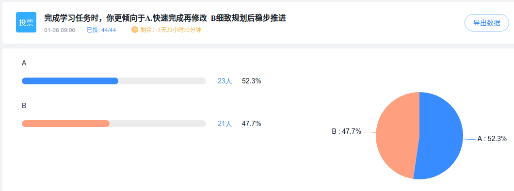 本次公开课紧扣课题核心,深度融合数字化工具与学科教学。课堂伊始,徐晋华老师以AI气质测评破冰,借助学习通投票与实时数据投屏功能引发学生思考,快速引入“气质”主题,有效调动了学生参与热情。