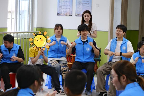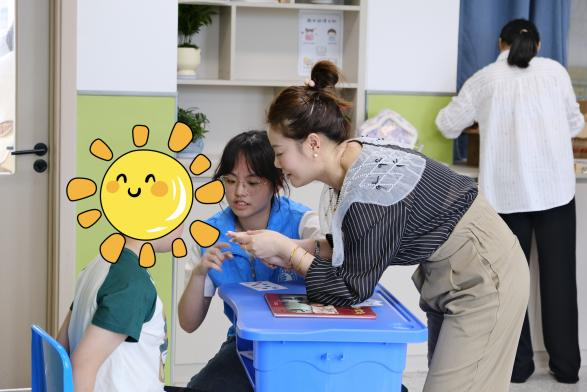 在言语康复环节,师生团队针对自闭症、语言发育迟缓等特殊儿童开展个性化训练。通过口肌功能训练、有趣的发音游戏以及充满爱的眼神交流互动,孩子们能够在欢乐的氛围中自然地提升语言表达能力。“这个孩子刚开始拒绝眼神接触,现在能主动指向图片并和他人分享了!”一名志愿者欣喜地分享道。