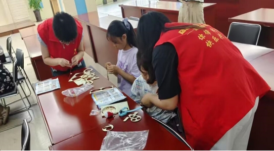 在“纸张承重”课上,协助志愿者尹思含、王楠楠分发材料后,主讲周新悦一声令下,孩子们立刻投入“纸桥”搭建。“我的三角形纸筒能放10枚硬币!”一名男孩举着作品欢呼。通过比拼与讲解,孩子们直观认识到结构稳定性的科学原理,课堂掌声不断。