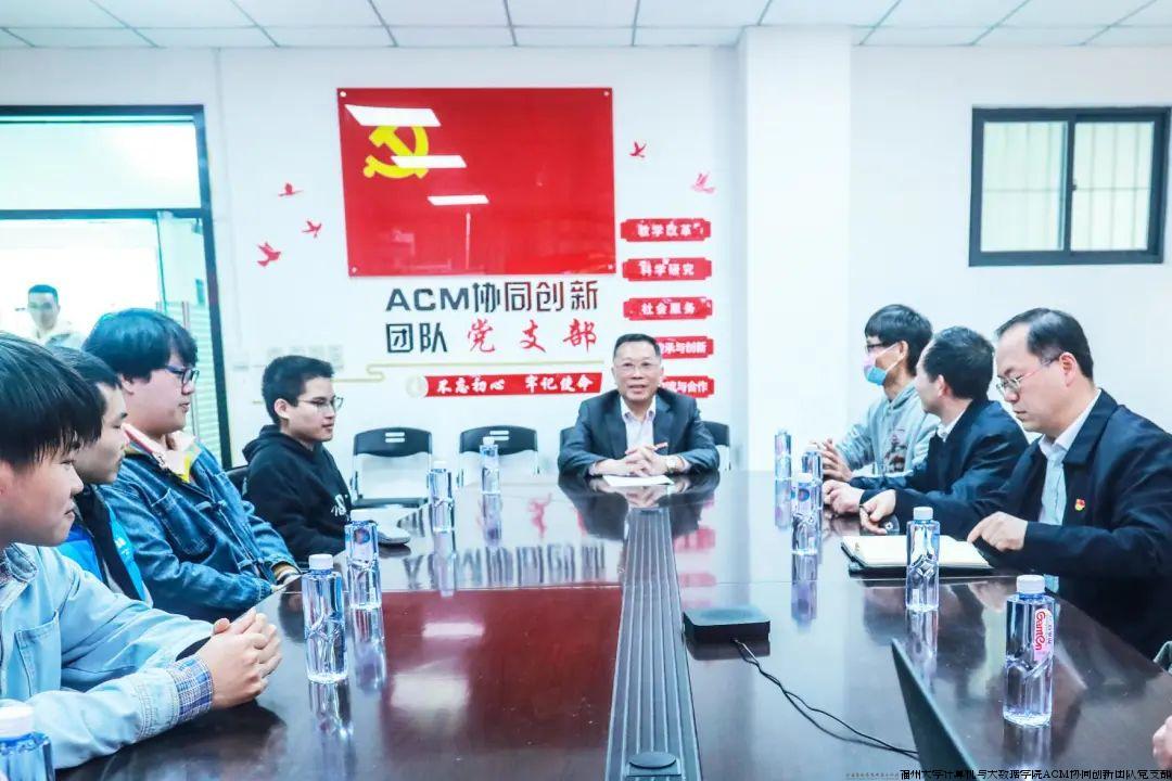 2023年3月20日下午,福州大学党委陈国龙书记来到ACM/ICPC集训中心,与ACM协同创新团队青年学生围坐在一起,面对面座谈,交流学习党的二十大精神的心得体会,为即将到上海参加第47届ICPC国际大学生程序设计竞赛亚洲区决赛(EC-Final)的团队和同学们加油鼓劲。