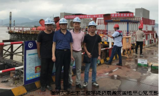 图2 支部老党员房贞政教授“帮传带”带领年轻党员调研道庆洲大桥施工现场 |