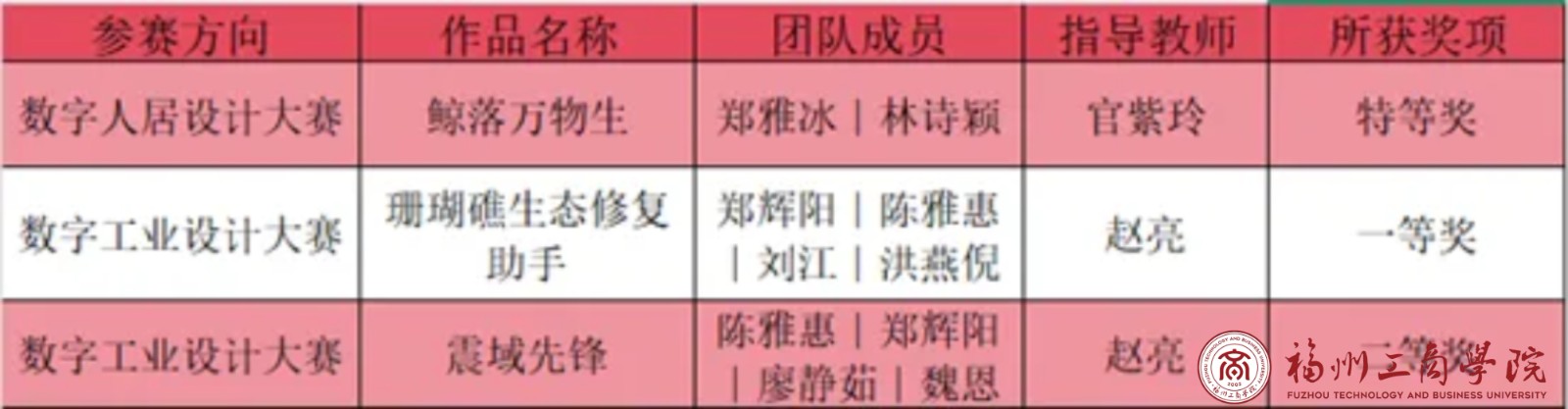 近日,2025年第18届全国三维数字化创新设计大赛福建赛区评选结果揭晓。我校艺术设计学院学子凭借卓越的创新思维与扎实的专业技能,在众多参赛队伍中脱颖而出,斩获特等奖、一等奖、二等奖,体现了学校在数字艺术设计领域的教学实力与育人成果。