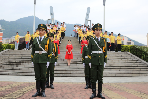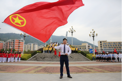 当小提琴拉起悠扬动听的《唱支山歌给党听》主旋律,青年学生代表高举团旗奋力奔跑在溪源人行桥上。在挥舞的团旗下,千名师生以昂扬奋进的姿态,洋溢着自豪热情的笑容,轻柔而激昂、高亢而深情地唱出了对党的热爱。