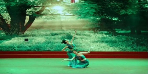 轻踮脚尖,灵动地旋转跳跃,用舞姿勾勒优美的弧线,一支傣族舞《藤枝叶》展示了藤推着枝向上生长,枝与藤相互缠绕,叶在一旁点缀的美好景象。