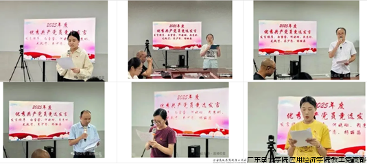 树立先锋标杆,榜样力量催人奋进。大会进入激动人心的年度优秀共产党员竞选发言环节。白雪莹、何晓珊、赖苏彬、毛政才、吴少恋、杨丽晶六位候选人依次登台,结合自身在教学科研、管理服务、支部建设等方面的实际表现,生动讲述了作为党员教师的初心使命与责任担当。他们的发言情真意切,事迹突出,充分展现了新时代高校党员教师潜心育人、勇挑重担、甘于奉献的精神风貌,赢得了与会同志的阵阵掌声。