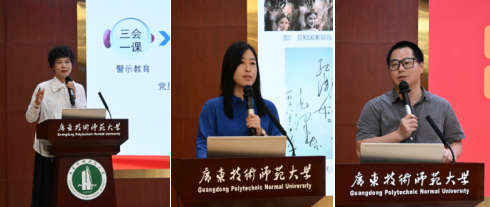 在“党建引领设计学学科发展与样板支部创建实践”议题环节,多家院校分享了创新做法。广州职业技术大学艺术设计学院副院长刘科江教授指出坚持党建引领,推动职业教育高质量发展;广东艺术职业学院美术设计学院党总支书记曲慧敏副教授则围绕党建引领,美育赋能,美术设计专业服务地方发展的实践路径;广东技术师范大学美术学院教工第二党支部书记张俊竹教授从“设计赋能强国行,红脉传承育英才”主题角度切入。