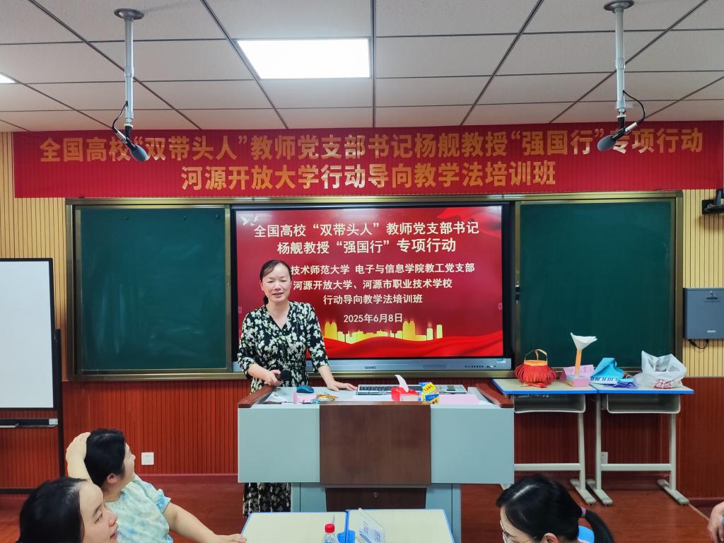 为深入贯彻“服务产业、引领职教”理念,推动“双百行动”落地见效,6月6日至8日,电子与信息学院全国高校“双带头人”教师党支部书记杨舰教授携专项团队,赴河源开放大学开展“强国行”行动导向教学法专项培训,助力区域职教发展。