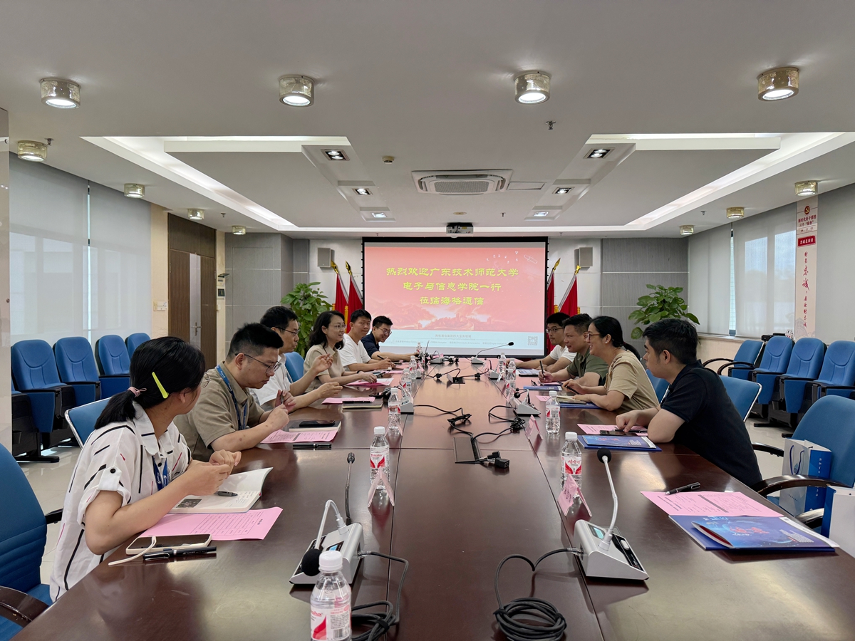 随后,团队到访广东博纬通信科技有限公司。在参观研发实验室时,公司相关负责人展示了其公司最新前沿成果。林沛提出“技术革新驱动课程升级”的合作设想:“建议共建联合实验室,将企业真实项目融入毕业设计,实现从实习到就业的无缝衔接。”双方就建立通信工程专业校外实践基地进行了密切的交流沟通。