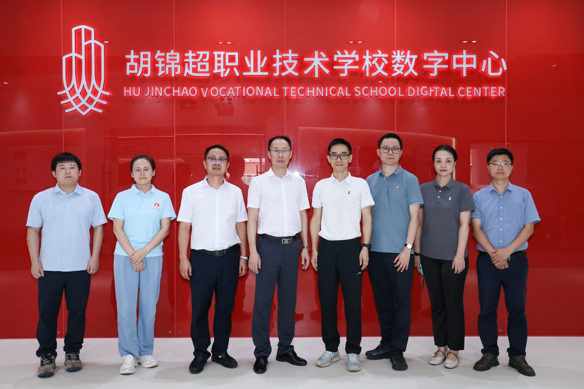下午,调研团队参观了胡锦超职业技术学校的特色校园建设,随后与党委书记周凉凉、社会服务处主任赖明霞展开座谈。会上,周凉凉分享了“锦文化”办学特色和数字化校园建设成效,双方探讨了中职教师专题培训、师范生教育实习基地建设等事宜。