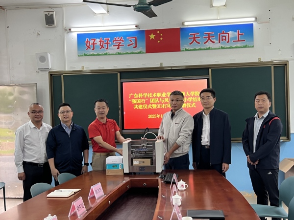 10月22日,广东科学技术职业学院“强国行”团队与凤安中心小学举行结对共建签约仪式。仪式现场,团队向学校捐赠3D打印机一台,为乡村学校科技教育提供坚实硬件支撑。这一举措不仅夯实了该校科技教育基础,更助力营造“科技浸润校园”的浓厚氛围,为后续常态化科技教育活动开展筑牢根基。