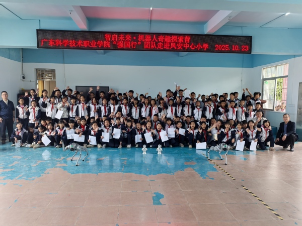为深入落实省委、省政府“百校联百县”助力“百县千镇万村高质量发展工程”部署要求,积极响应广东省党建研究会《关于做好“强国行”“广东行”团队赴河源开展校地供需对接活动的通知》工作安排,10月22日至23日,广东科学技术职业学院机器人学院教工第二党支部“强国行”团队走进河源市紫金县凤安镇凤安中心小学与凤安中学,开展“智启未来·机器人奇妙探索营”科学进校园活动,为200余名中小学生打造了一场沉浸式科技盛宴。