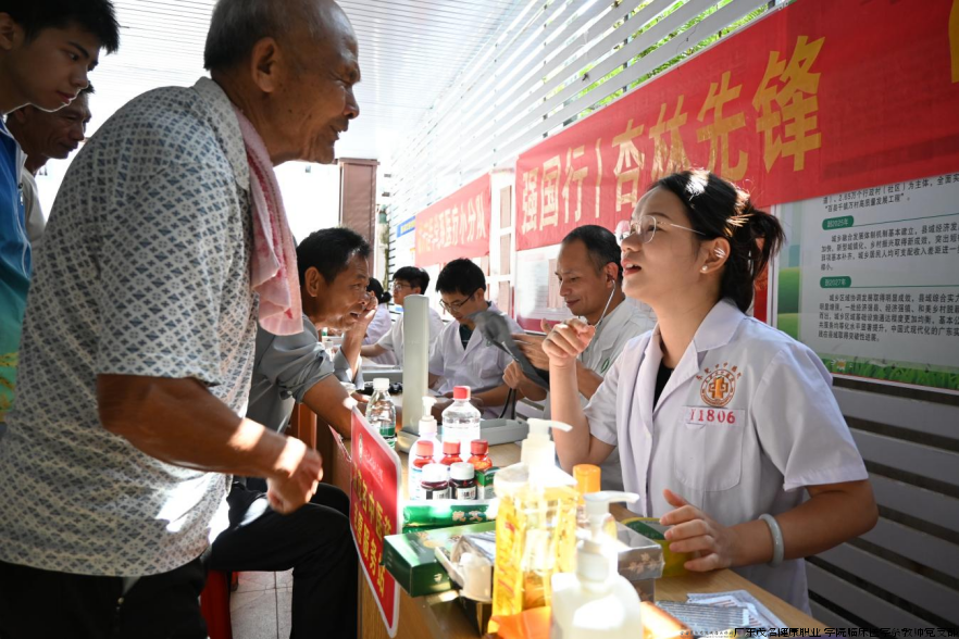 为深入贯彻落实乡村振兴战略,助力健康中国乡村建设,广东茂名健康职业学院临床医学系“医助文蓬,七彩筑梦”小分队以党建为引领,在广东茂名健康职业学院临床医学系“双带头人”教师党支部书记工作室的具体指导帮助下,于7月8日在文蓬村党群服务中心开展“健康诊疗进乡村,医心服务暖民心”健康诊疗活动。