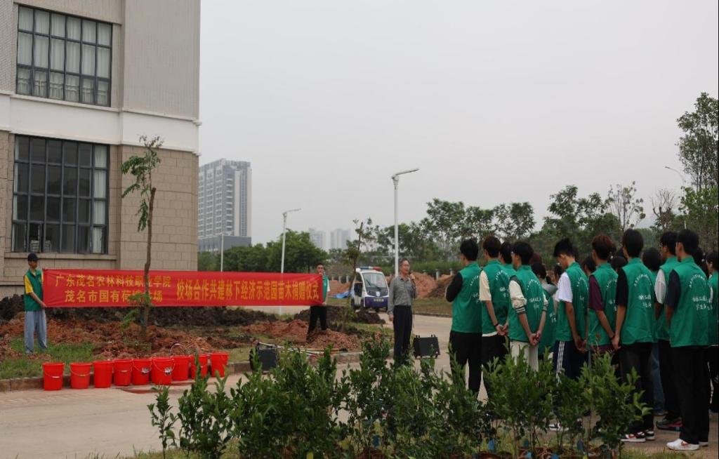 2025年4月18日上午,在学院图书馆旁举行了茂名市国有荷塘林场与学院合作共建林下经济示范园苗木捐赠活动。学院党委书记林业强出席了活动并讲话,出席活动的还有荷塘林场场长崔毅、副场长邹剑强、学院副院长林思诚以及林场代表和学院师生代表共50多人。