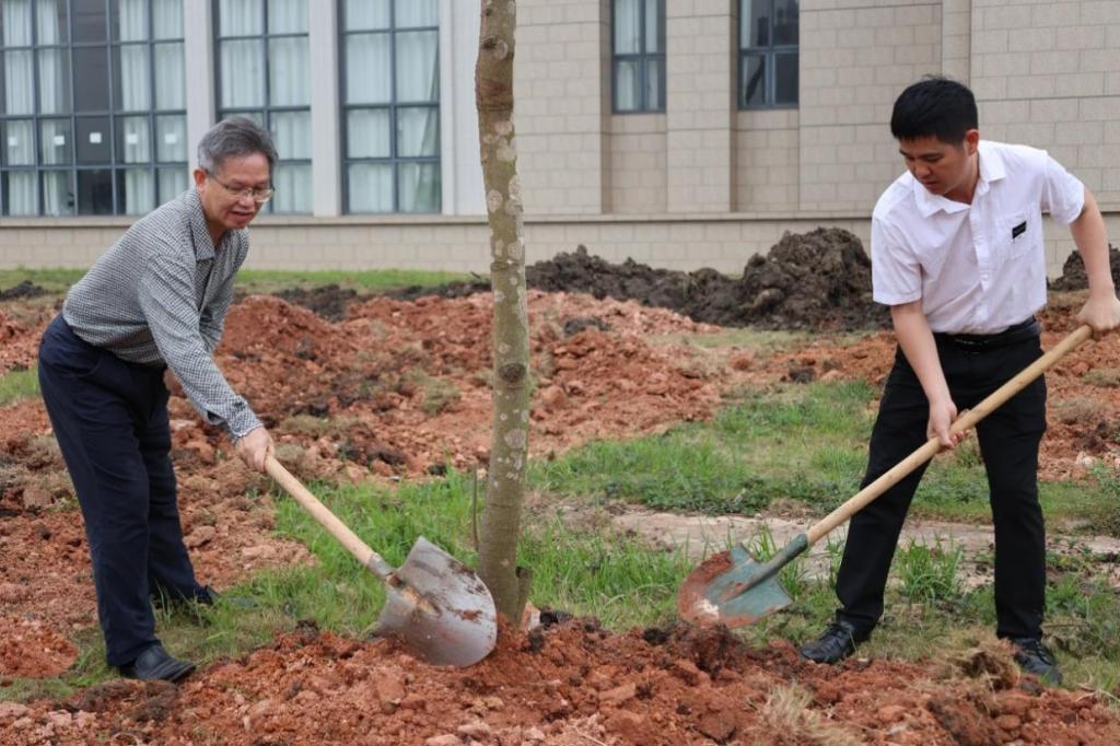 仪式后,学院师生和林场代表进行了植树活动,共同种下了一片上层乔木为国家二级保护植物——格木。