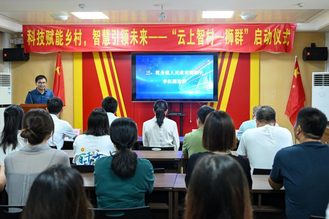 7月11日,“科技赋能乡村,智慧引领未来——云上智村——狮群”小程序启动仪式在珠海市斗门区乾务镇狮群村党群服务中心圆满举行。政府、企业、村民代表与学校师生共同见证科技赋能乡村治理的重要时刻。