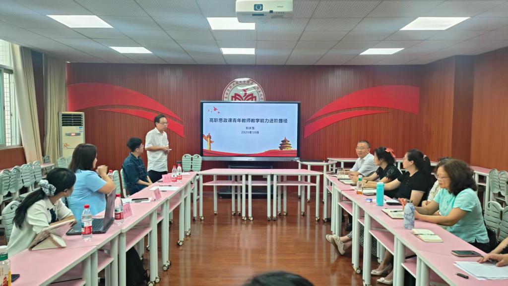 随后,刘永生教授和李琳教授就高职思政课青年教师的成长之问、教学上的痛点、教学能力进阶的路径作了专题分享。刘教授表示,青年教师首先要夯实专业基础,站稳讲台;进而实现从“照本讲授”到“研析整理”的教学方法升级,激活课堂;最终完成从“经验型”到“研究型”的能力跃迁。他强调,作为高职思政课教师也应积极参与课题申报与论文案例撰写,做到以研促教、以案促教,不断提升理论功底,夯实教学功力。李琳教授则深度解读了思政课教师应如何创新课堂教学形式、提高教学质量。她强调,思政课堂教学应围绕“吃透理论政策、强化价值引领、培养社会主义事业接班人”等目标,贯彻以学生为中心、结合专业背景、激发兴趣导入、注重以小见大、实现生动呈现、讲透重点内容等六大策略,全面提升思政课的吸引力与感染力。