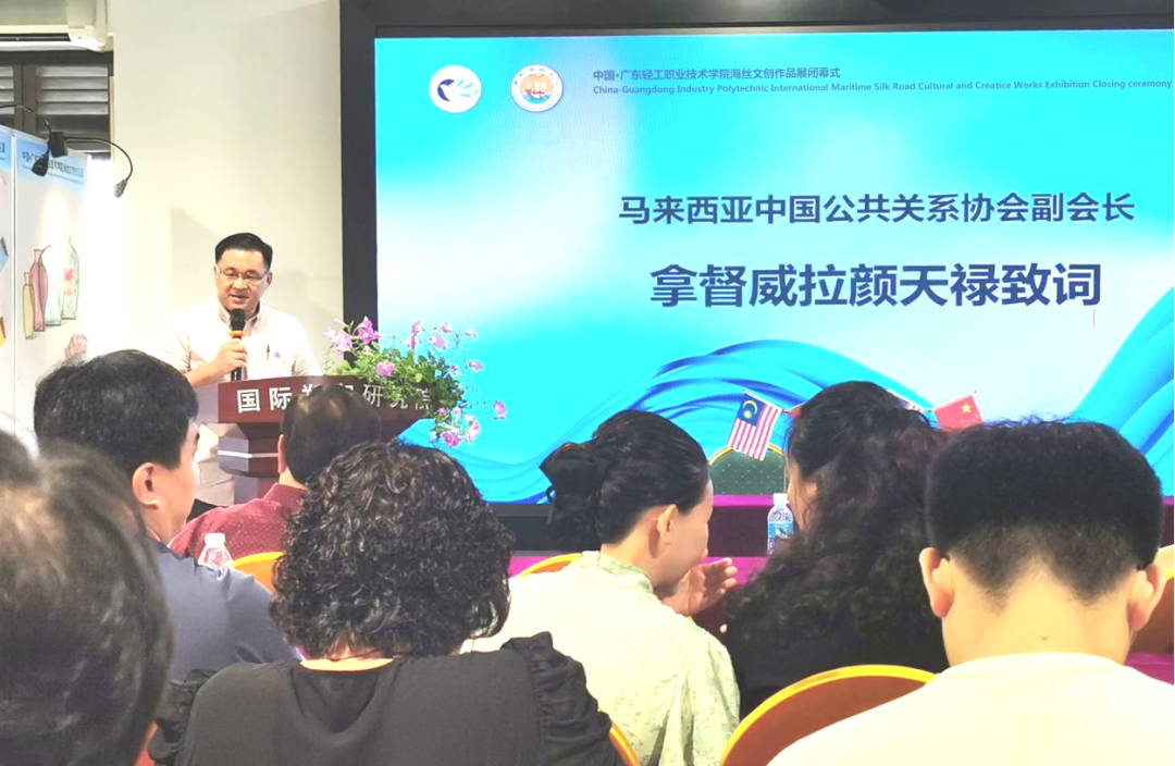 展览活动得到了马来西亚中国公共关系协会副会长拿督威拉颜天禄的高度肯定。他在致词时强调,今年是中马两国共建“一带一路”十周年、中马两国建立全面战略伙伴关系十周年,同时也是中马正式建交49周年。他高度赞扬本次展览践行了“一带一路”倡议的民心相通、文化先行,体现了文明的交流互鉴,传播和弘扬了“和平发展、互融共生”的郑和精神,并寄希望广轻艺术设计学院与世界文化遗产古城鸡场街工委会开展项目合作,以文创设计助力中马友好和“一带一路”建设。
