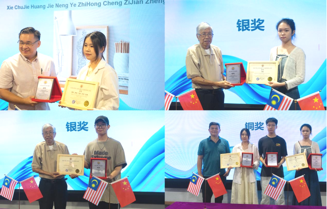 闭幕式上举办了海丝文创作品评选的颁奖典礼。马来西亚中国公共关系协会副会长拿督威拉颜天禄、国际郑和研究院和郑和文化馆创始人陈达生博士、张瑞发院长、周安兵董事分别为获奖师生代表颁发了奖牌及获奖证书。