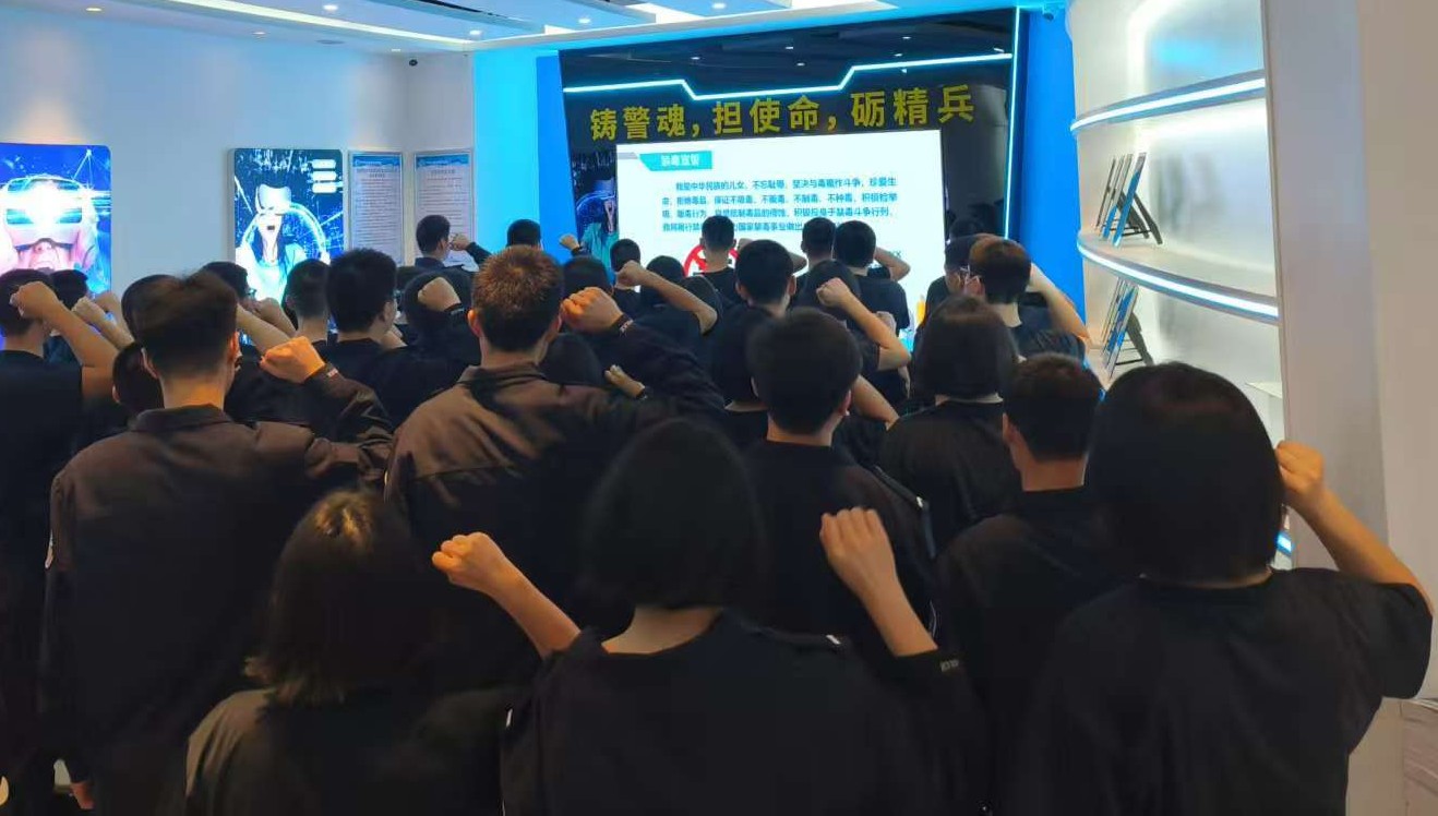 全体同学肃立进行集体禁毒宣誓,照片中定格的热血誓言,将“对毒品说不”的决心化作星火,在每位学子紧紧攥住的拳头中燎原!