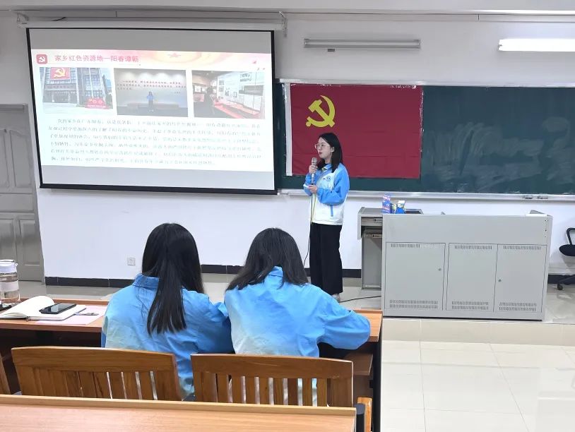 何建颖同志分享了在暑假三下乡前往家乡的红色资源地—阳春谭簕红色展馆。深入了解了阳春的革命历史,重温了革命先烈的丰功伟绩,提到了早期革命者----陈必灿。1927年4月,陈必灿在阳江被国民党反动派逮捕。入狱后,他饱受折磨却坚贞不屈,并在狱中写下大义凛然的遗书,充分体现了共产党人的革命信仰和高尚情操。