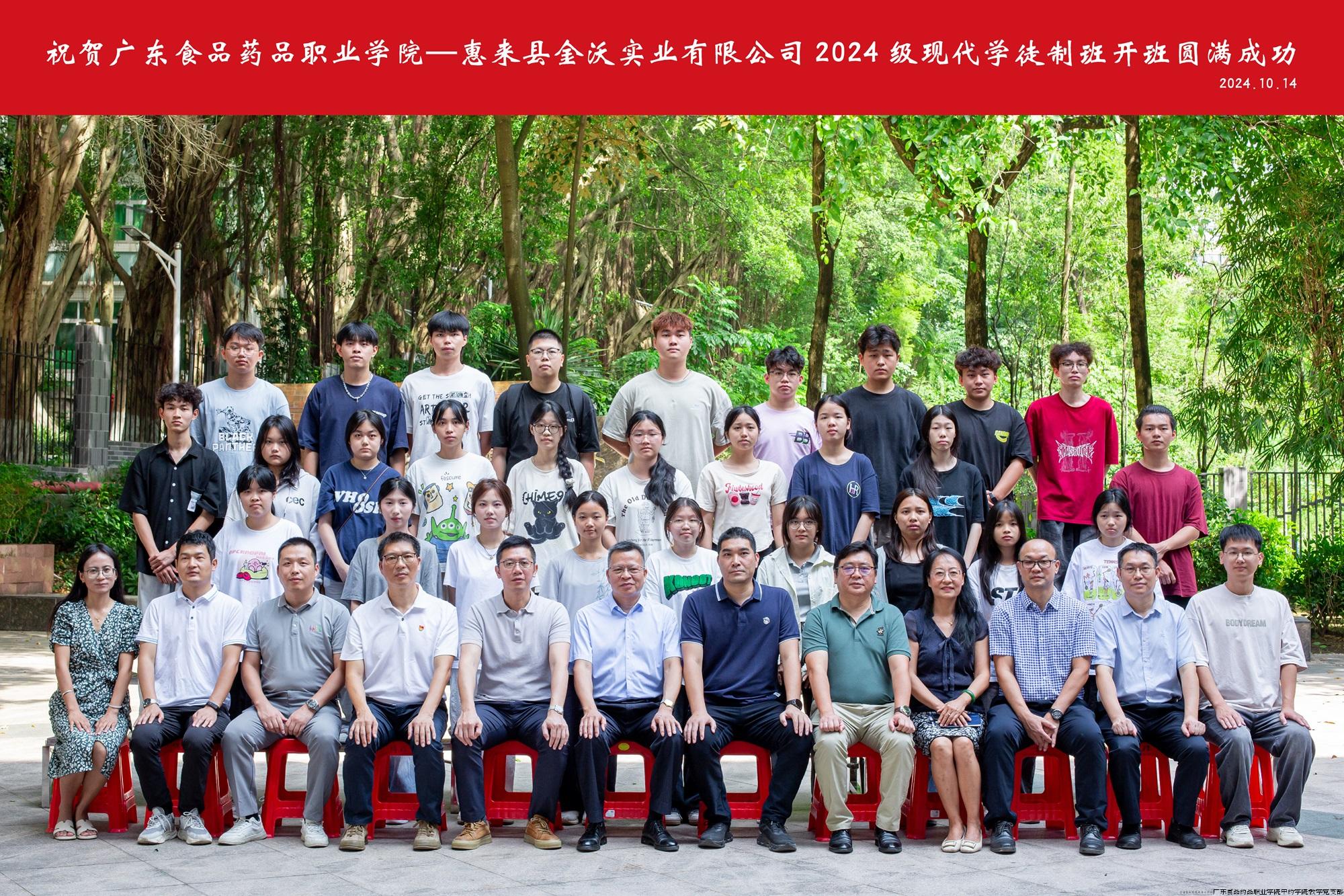 为了进一步深化校企合作人才培养模式,推进校企协同育人,实现人才精准对接,中药学院于2024年10月14日上午在标本馆智慧课室举办了广东食品药品职业学与惠来县金沃实业有限公司中药材生产与加工专业2024级现代学徒制班开班典礼。学校领导张小红、招生就业处处长江曼鸿、教务部副部长张谦明、惠来县金沃实业有限公司董事长郑建遇、中药学院党总支书记利健文、中药学院院长张雷红、中药学院副院长梁永枢、中药学院副院长赵珍东、24现代学徒制班班主任李威、中药学院辅导员杨召霞、王泵等相关人员出席仪式,2024级现代学徒制班全体同学参加了开班典礼。