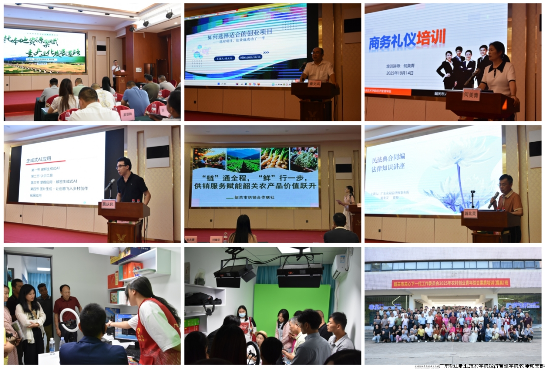 10月14日至16日,由韶关市关心下一代工作委员会(以下简称“市关工委”)主办、我校承办的2025年韶关市“百千万工程”农村创业青年综合素质培训(提高)班在曲江校区、浈江校区顺利举行。来自全市三区二市五县的100余名农村创业青年带头人齐聚松山,共同开启了一场为期三天的学习赋能之旅。