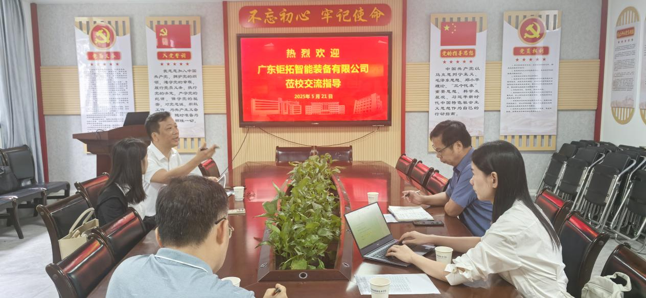 据悉,广东钜拓智能装备有限公司为“国家高新技术企业”“创新型中小企业”及“专精特新企业”,拥有近100项专利技术。2021年,公司在华南先进装备制造产业园落地的韶关项目,是公司发展历程中的重要里程碑,是省委统战部、民建及韶关市委主要领导亲自挂点联系的重点企业,项目占地130亩,总投资额高达2.6亿元。此次交流标志着双方合作进入新阶段,未来,校企双方将携手探索职业教育创新发展新模式,形成“人才共育-技术共研-成果共享”的产教融合新生态。