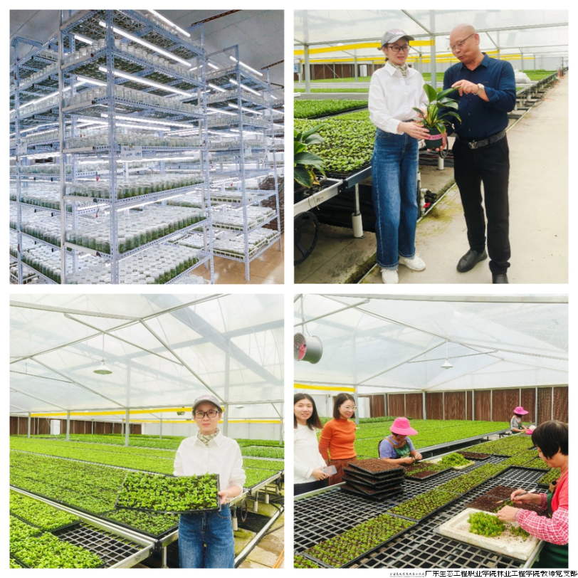 2025年10月23日,林业工程学院教师党支部书记、专业带头人何旭君教授与李慧钗、李智俊等教师前往开平市德卉园艺有限公司进行专业调研、校企合作课程建设及课程思政资源拍摄。开平市德卉园艺有限公司为江门市龙头企业,是花卉领域的行业翘楚。农业生物技术专业一直坚守对标龙头企业岗位用人标准,深化校企合作,在《林下经济植物组织培养》《无土栽培技术》等课程建设、教材编写中积极融入企业新技术、新工艺、新标准,充分挖掘课程思政元素,努力培养学生的“三农”情怀。
