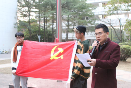 2019年12月9日7时许,《国际歌》激昂的旋律在南校升旗台奏响。在冬季凛冽的寒风中,我校新闻与传播学院53名新党员在国旗和党旗的注视下庄严宣誓:“我志愿加入中国共产党……”