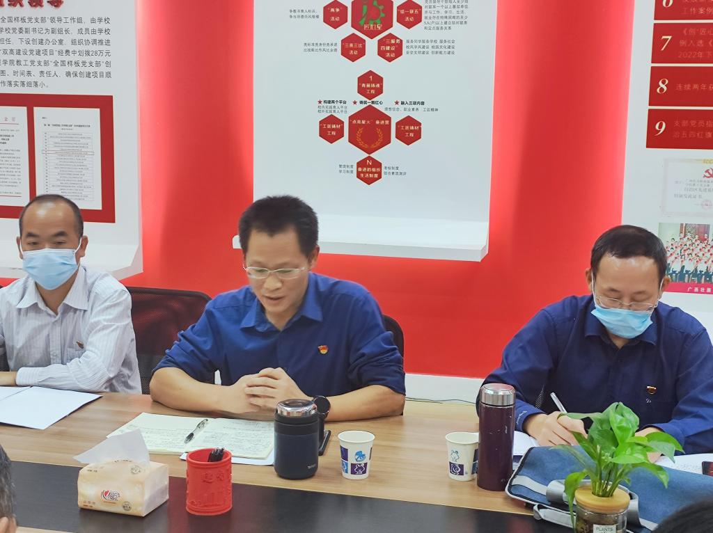 会议首先由学院党总支书记杨德江传达学校党委会扩大会有关学习贯彻习近平总书记在中国共产党第二十次全国代表大会上的报告精神和习近平总书记在参加党的二十大广西代表团讨论时的重要讲话精神的部署要求,并就学习党的二十大报告精神作分享交流。杨书记强调,全体党员要认真学习领会党的二十大精神内涵,并将学习党的二十大精神与党员的岗位工作结合起来,运用党的二十大精神指导学院的教育教学和改革发展,推动学院各项事业再上新台阶。