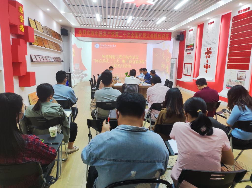 随后,与会党员围绕“同心共庆二十大,携手奋进新征程”进行分享交流。院长老盛林在交流中强调要站在“为党育人,为国育才”的高度,专业发展转型要配合国家实现碳达峰碳中和的目标,教师要不断更新自身的知识和教学理念,紧跟时代发展步伐。专职组织员程朝同志建议将“因材施教”理念更多贯穿于教师教学全过程,教师要担起立德树人的职责使命。电气自动化专业带头人朱名强同志在分享中表示,教学中应注重对“大国工匠精神”的渗透,增强学生技能成才的信心和技能报国的决心。学生党支部书记覃廖青同志在分享中表示,要引导学生正确认识时代责任和历史使命,做新时代有担当有作为的大学生。教师代表黄宗晓同志以青年教师和大家分享了收看党的二十大开幕盛况后的体会,并结合教学工作实际,分享课程思政有效融专业教学课堂的心得。