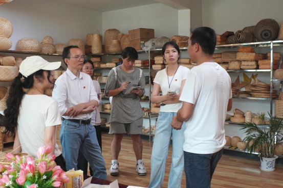 与当地竹编工坊负责人讨论新工艺新产品研发