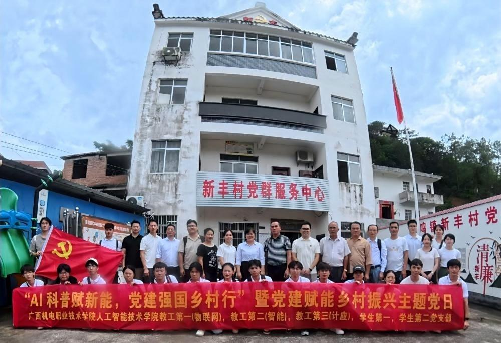 6月20日,广西机电职业技术学院人工智能技术学院5个党支部共 26 名党员,联合全景视频拍摄团队,深入博白县新丰村开展“AI 科普赋新能,党建强国乡村行”主题党日活动。活动结合当地实际组建了“竹艺传承调研组”“智创视频先锋组”“AI启智助学组”3个特色小组,精准对标“强国行”专项任务中的“提供教育服务”“推动科技赋能”“深化实践育人”三大主要任务,为乡村振兴注入“党建+科技”的双引擎动力。