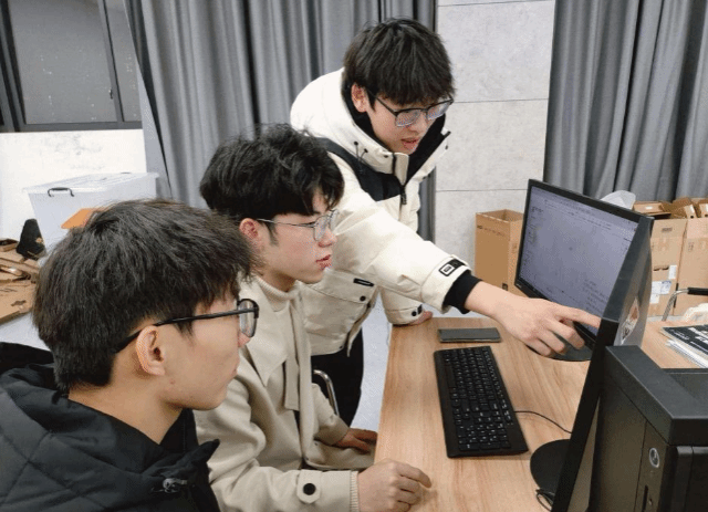 我校学子张智家(左)、杨豪迪(中)、李帅斌(右)在认真备赛