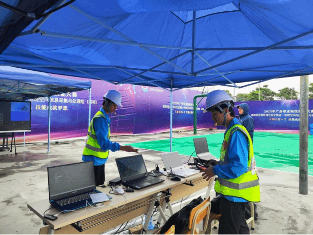 3月14-16日,在2025年广西职业院校技能大赛高职组资源环境与安全赛道——地理空间信息采集与处理组(赛项)中,来自全区 21 所高校的120余名师生参赛,竞争激烈。土木工程学院莫炜、蒋佳宏、潘宣佑和周成浩4位同学,在党员教师教师姚明星和赵磊的精心指导下,荣获银奖。该赛事在赛题和竞赛方式上进行了大胆创新,要求参赛队自主确定参赛项目,极大考验了学生的专业技能与综合素质。