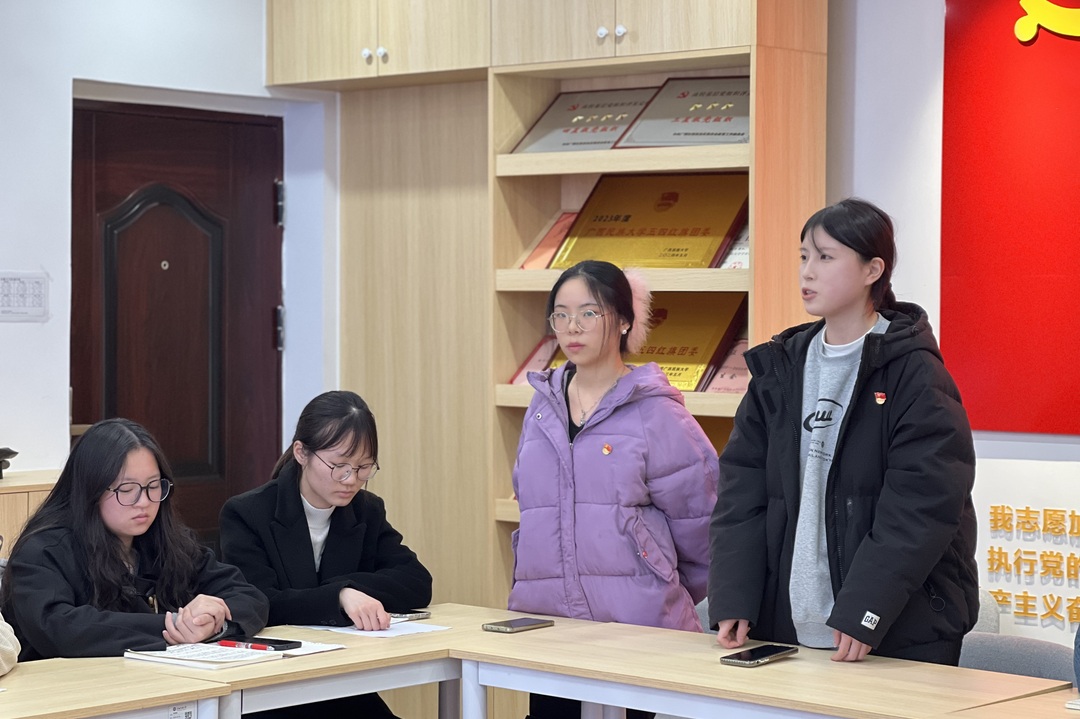 针对支部未来的教育计划、建设规划,每位党员都认真查摆不足、深入剖析问题,提出一系列整改措施和建设性意见。吴先源副书记在总结中强调,要将“个性化成长”作为破解高校党建与专业教育“两张皮”的关键抓手。要将一支部的三个“家文化”结合到服务党员发展的规划中,关注党员自身特点,因材施教,全方位发展党员综合素质。以培养特色人才破除“人才断层”的建设困境。要使支部党员发挥先锋模范作用,做到“提笔能写、开口能讲、遇事能谋”,在文学创作与党性锤炼的双向奔赴中,书写新时代青年党员的使命担当。