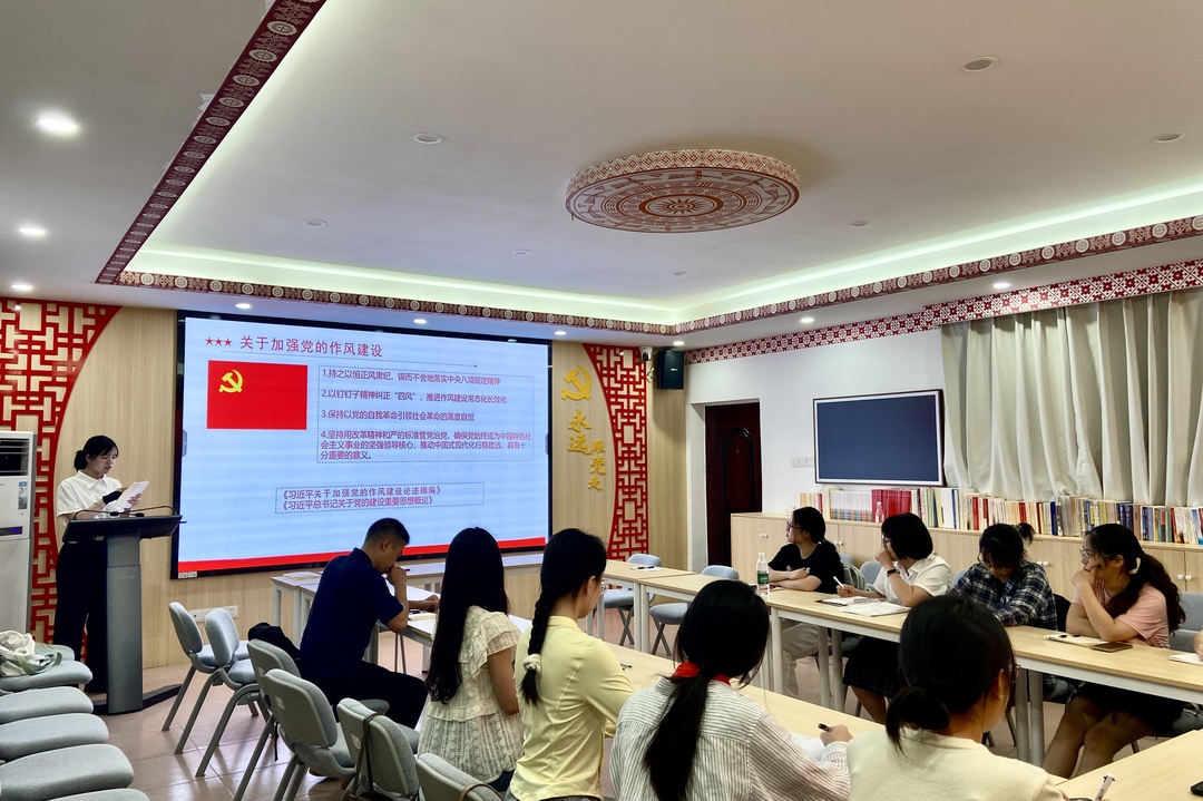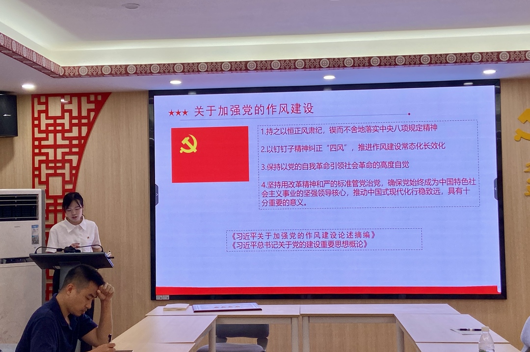 会议伊始,陈江怡围绕由中央文献出版社出版的《习近平关于加强党的作风建设论述摘编》一书,介绍并讲解了书中习近平同志关于加强党的作风建设发表的一系列重要论述,带领支部预备党员集体深入学习领会有关加强党的作风建设的科学指引和根本遵循。