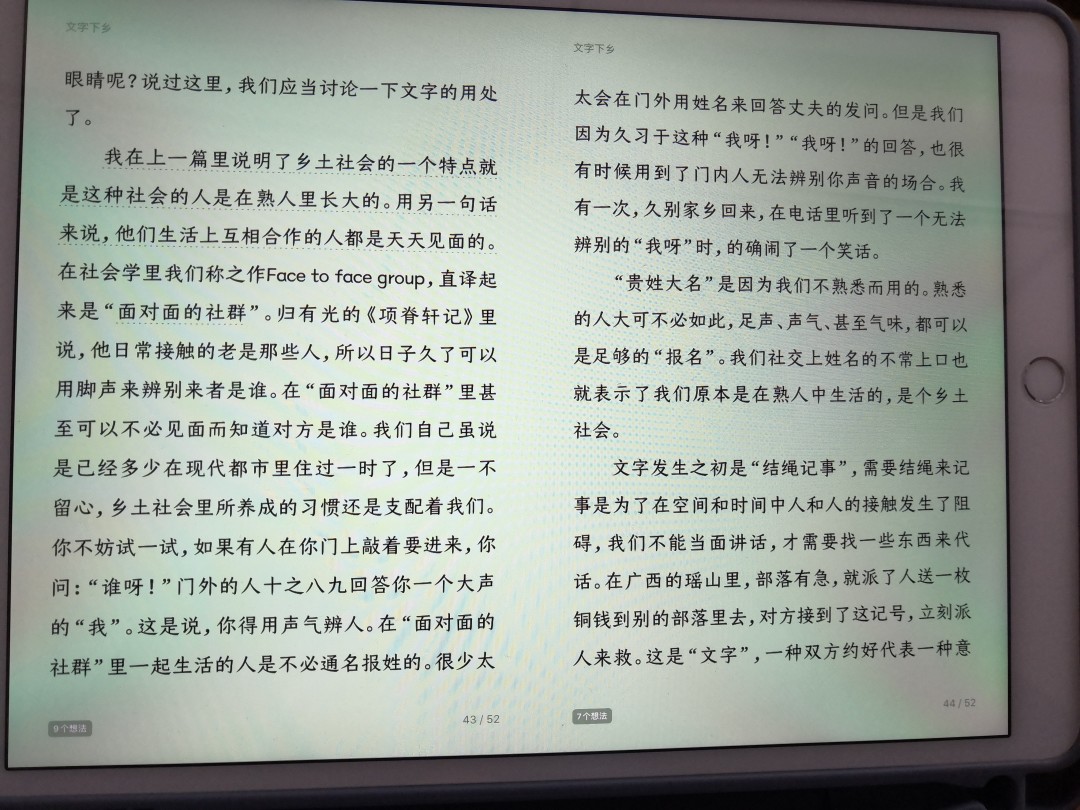 他在谈论文字下乡的问题里面,他认为,在乡村社会很大程度上是不需要文字的,经验的传播往往是手把手的教,在一个地区住的几百年,世世代代面临的问题很大程度都是一样的,解决的办法都是一样,不需要什么理论,什么创新。当然先生在这两篇文章里面分析很多,也很深刻。